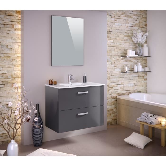 terra ensemble salle de bain simple vasque avec miroir l 80 cm gris laque brillant cdiscount maison