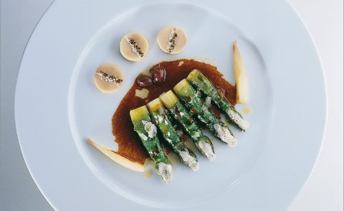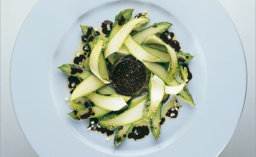 asperges vertes cuites et crues sauce pilee de truffe noire par alain ducasse