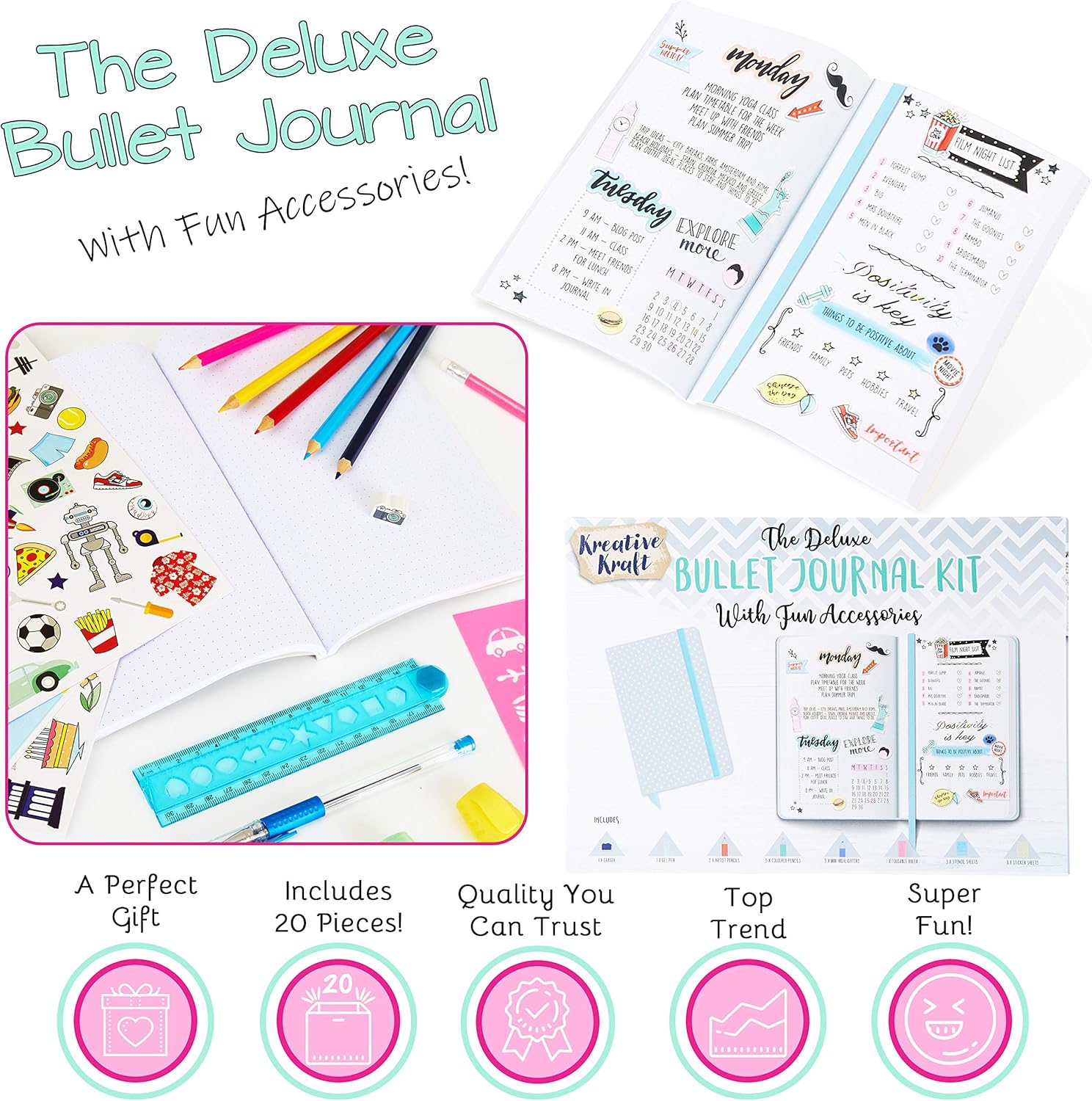 kreativekraft carnet pointille dotted journal kit complet avec accessoires agenda organiseur avec carnet to do list planner stickers pochoirs idee de cadeau creatif pour ecole voyage bureau ado fournitures de bureau cahiers