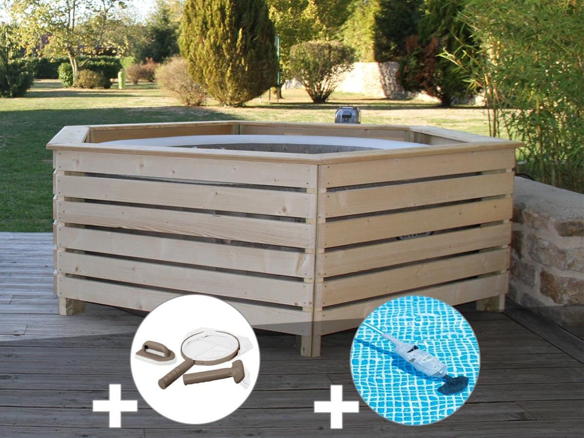 pack spa gonflable intex purespa sahara rond bulles 4 places habillage en bois aquazendo kit d entretien aspirateur leroy merlin