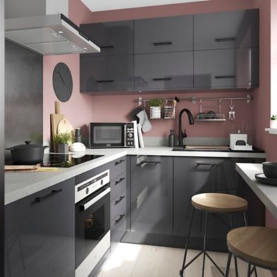 cuisine complete vitroceramique laquee gris all in 2 castorama