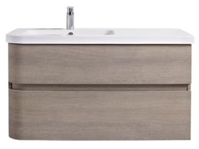 meuble sous vasque a suspendre cooke lewis voluto bois grise version gauche 105 cm plan vasque en resine castorama