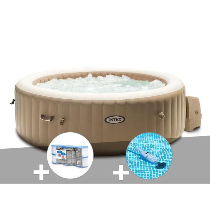 kit spa gonflable intex purespa sahara rond bulles 4 places 6 filtres aspirateur beige cdiscount jardin