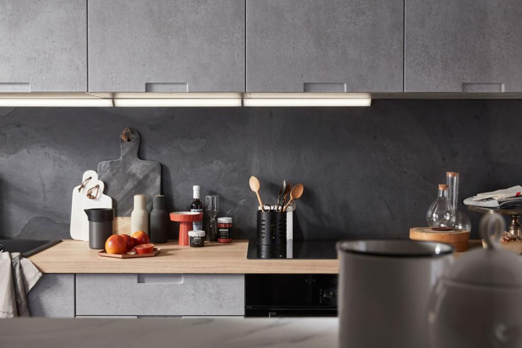 cuisine sydney gris clair brillant l 180 cm avec meuble haut et bas leroy merlin