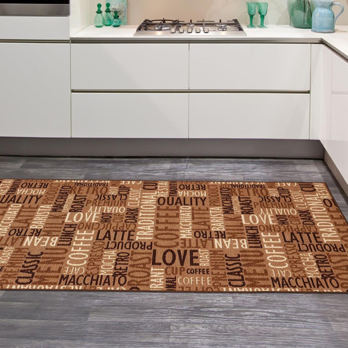 tapis de cuisine 67x180 cm rectangulaire cafe love beige cuisine adapte au chauffage par le sol leroy merlin