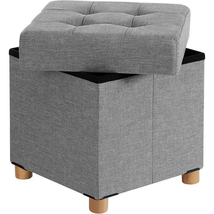 songmics repose pieds avec capacite de rangement pieds en bois massif avec couvercle 38 x 38 x 40 cm gris clair lsf14gyx cdiscount maison