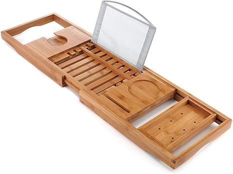 navaris pont de baignoire extensible bambou plateau de bain ou lit avec pied pliable support tablette livre telephone verre rangement amovible rakuten