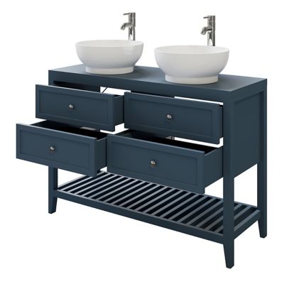 meuble sous vasque a poser 4 tiroirs goodhome perma bleu 120 cm castorama