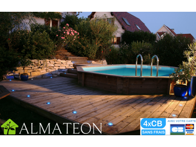 piscine en bois ubbink octogonale allongee azura 400 x 750 cm hauteur de 130 cm liner coloris beige almateon