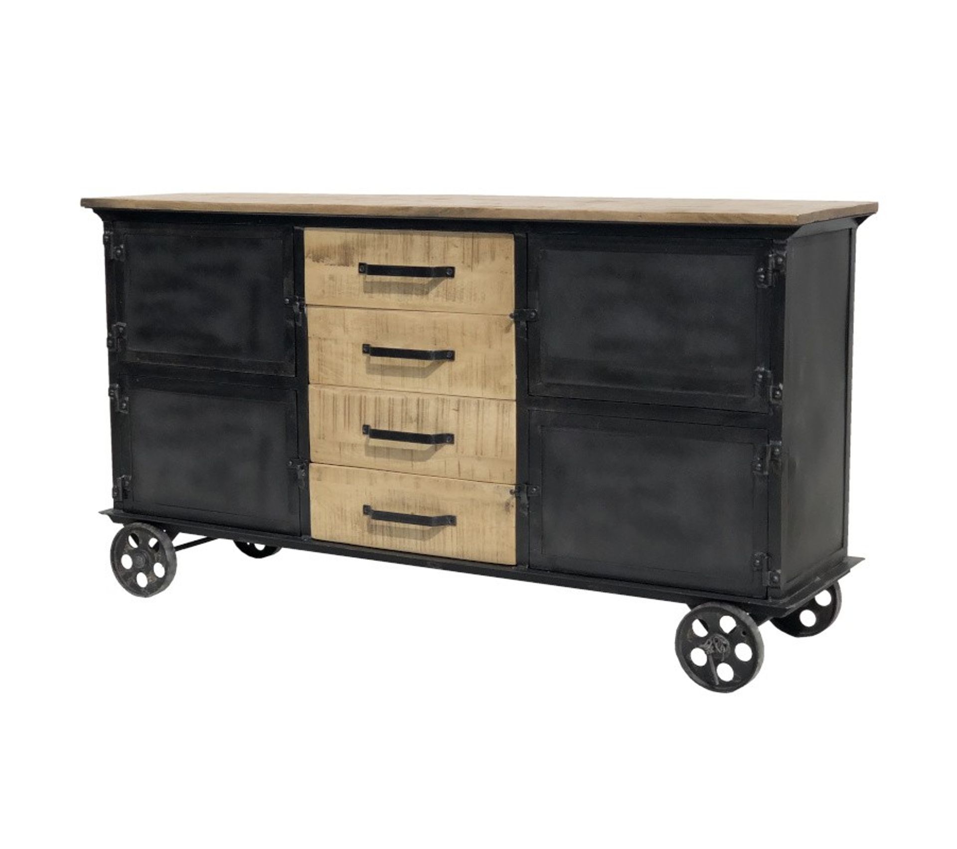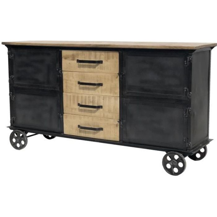 bahut buffet enfilade console meuble cuisine a roulettes bois fer 153 50 cm x 82 cm if 865 a cdiscount maison