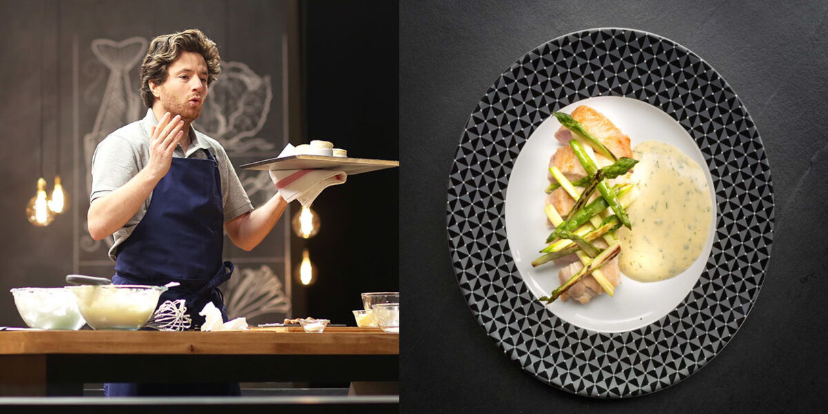 le poulet aux asperges en 14 minutes de jean imbert femme actuelle le mag