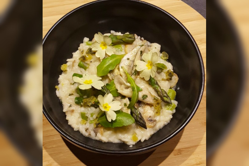 la recette du risotto aux asperges vertes et pesto a l ail des ours du chef julien budin sortiraparis com