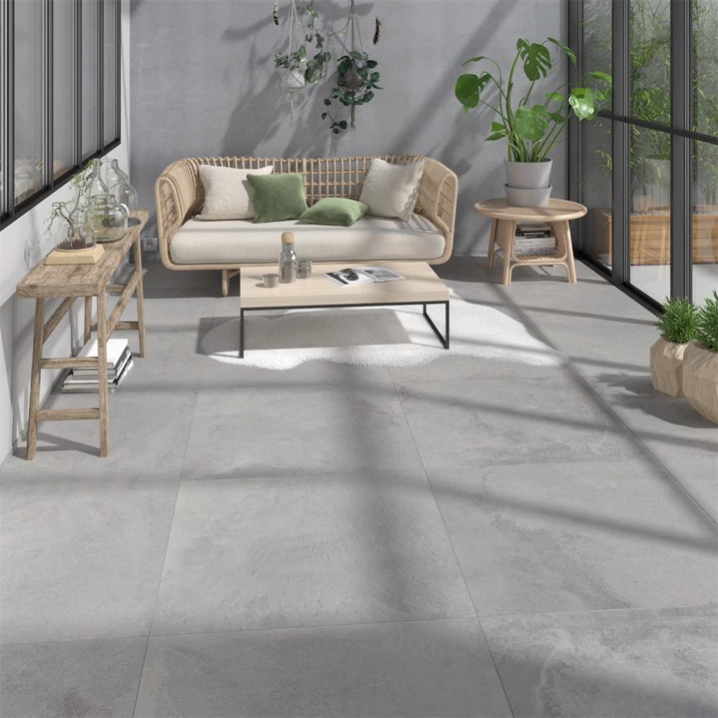 de grands carreaux gris pour un sol moderne et minimaliste a mixer avec un meuble retro et des rideaux a m deco carrelage rideaux a motifs carrelage interieur