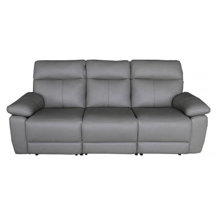 collie canape 3 places relax electrique cuir gris l 222 x p 98 x h 103 cm cdiscount maison