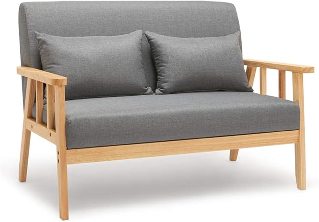 meerveil canape 2 places fauteuil salon scandinave cadre en bois surface en tissu lin pour petit appartement chambre bureau gris fonce amazon fr cuisine maison