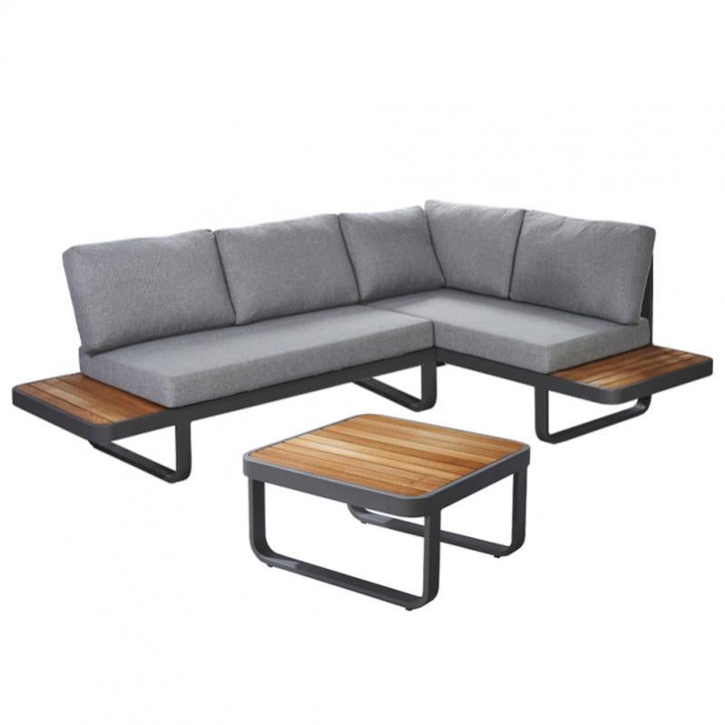 salon de jardin en aluminium gris anthracite et bois de teck vahine leroy merlin