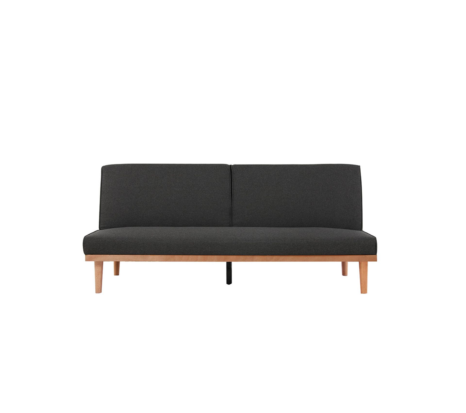 canape lit clic clac 3 places davao gris tapisse en tisu 100 polyester pieds en bois banquette clic clac but