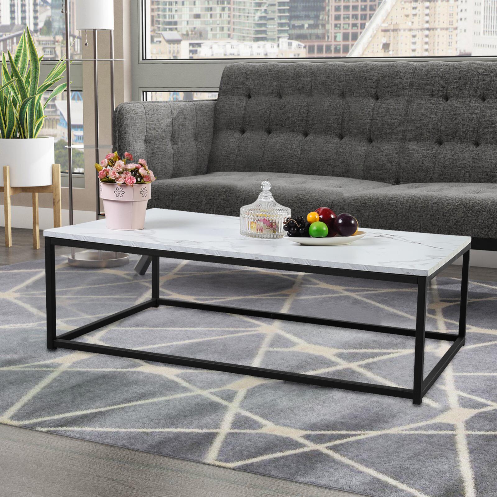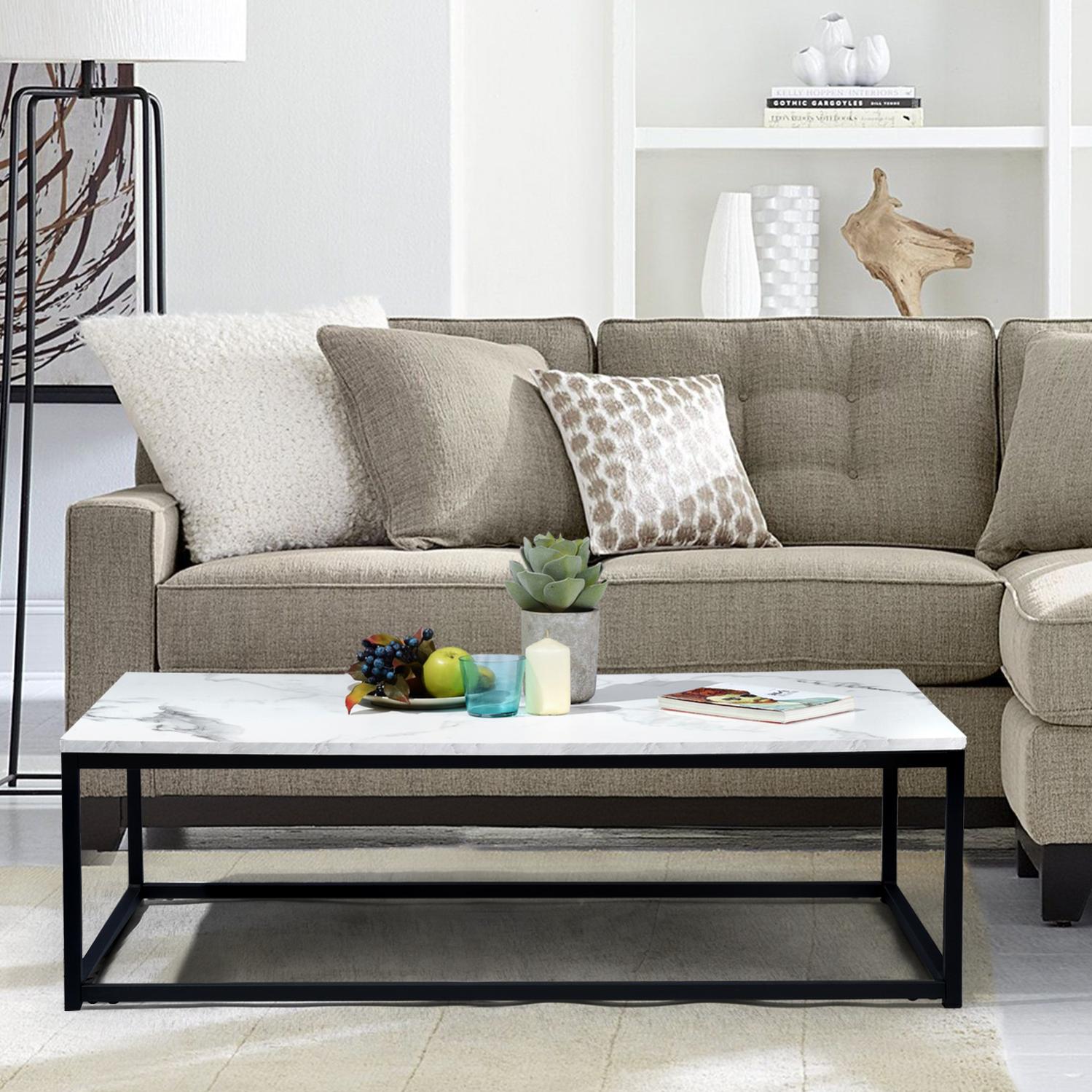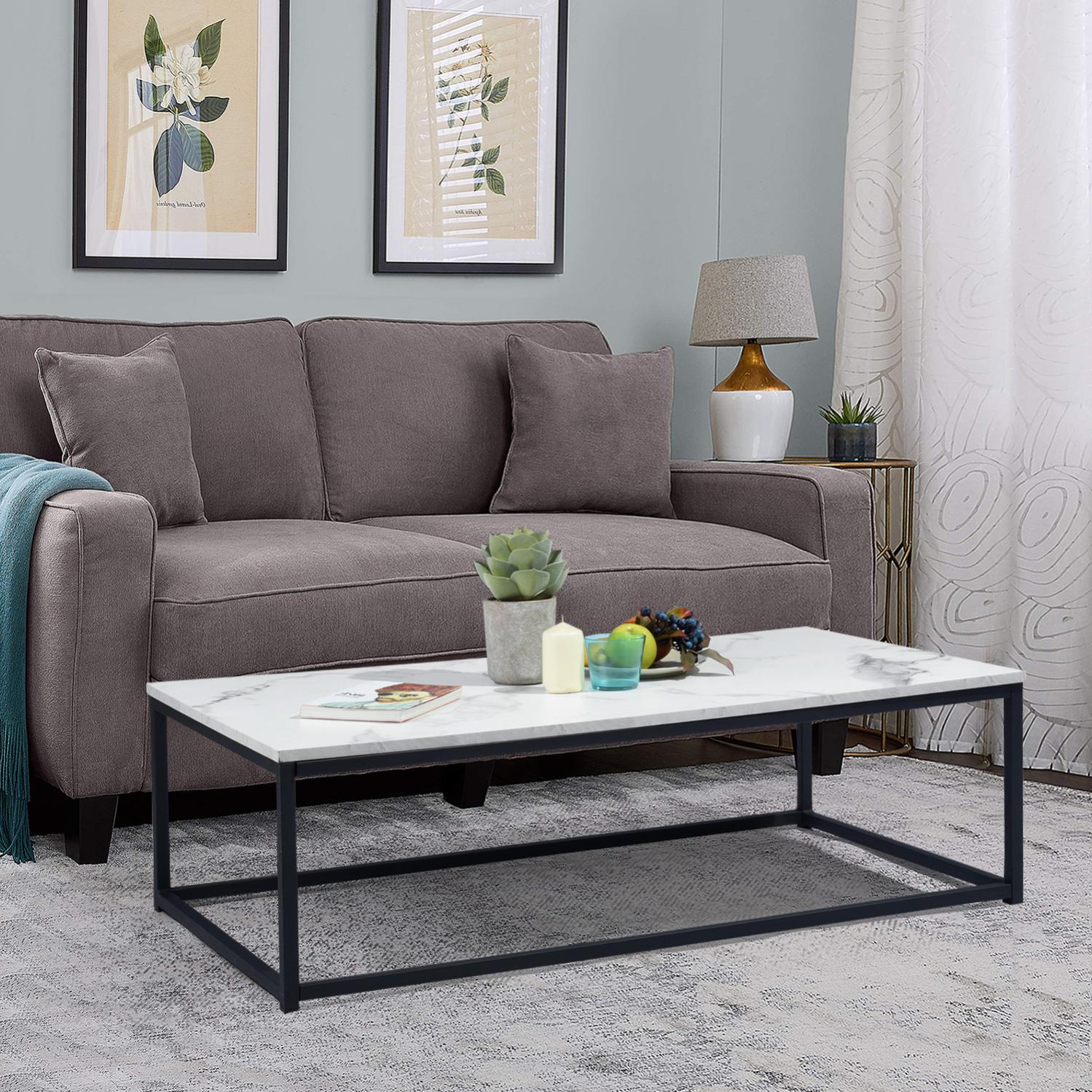 furnish1 moderne table basse bout canape 110x60cm plateau panneau bois marbre metal peint noir leroy merlin