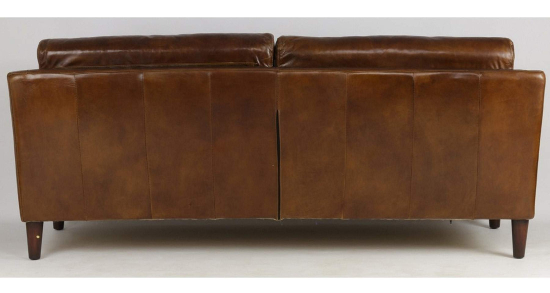 canape 3 places deco en cuir pleine fleur marron cigare louisiane