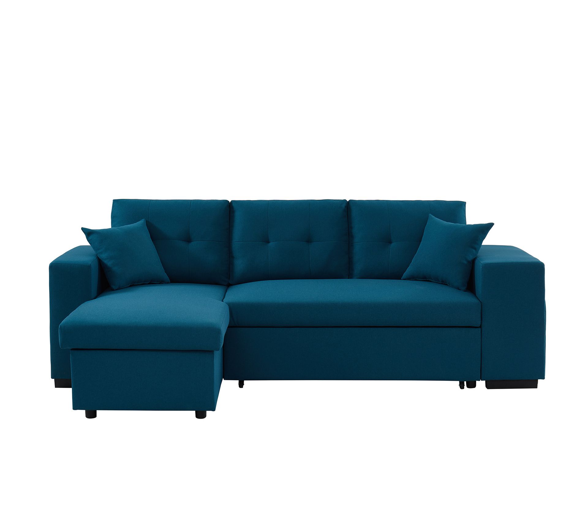 canape d angle reversible et convertible 4 places en tissu bleu petrole poufs gamme alpago canape but