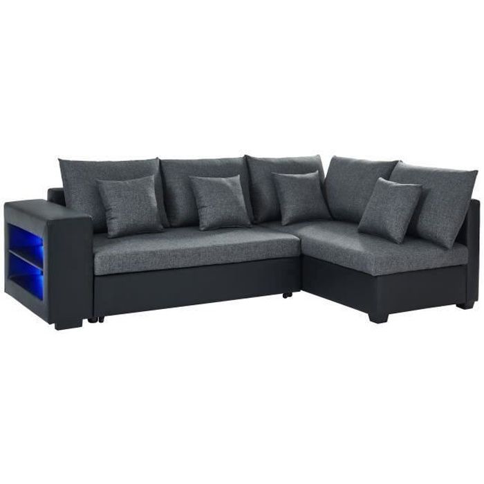 canape d angle convertible enzo tissu 2 poufs noir et gris
