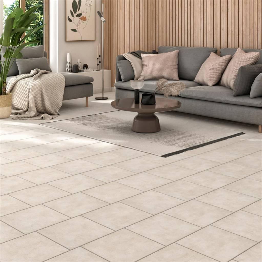 carrelage sol et mur medio effet ciment beige road l 30 5 x l 30 5 cm artens leroy merlin