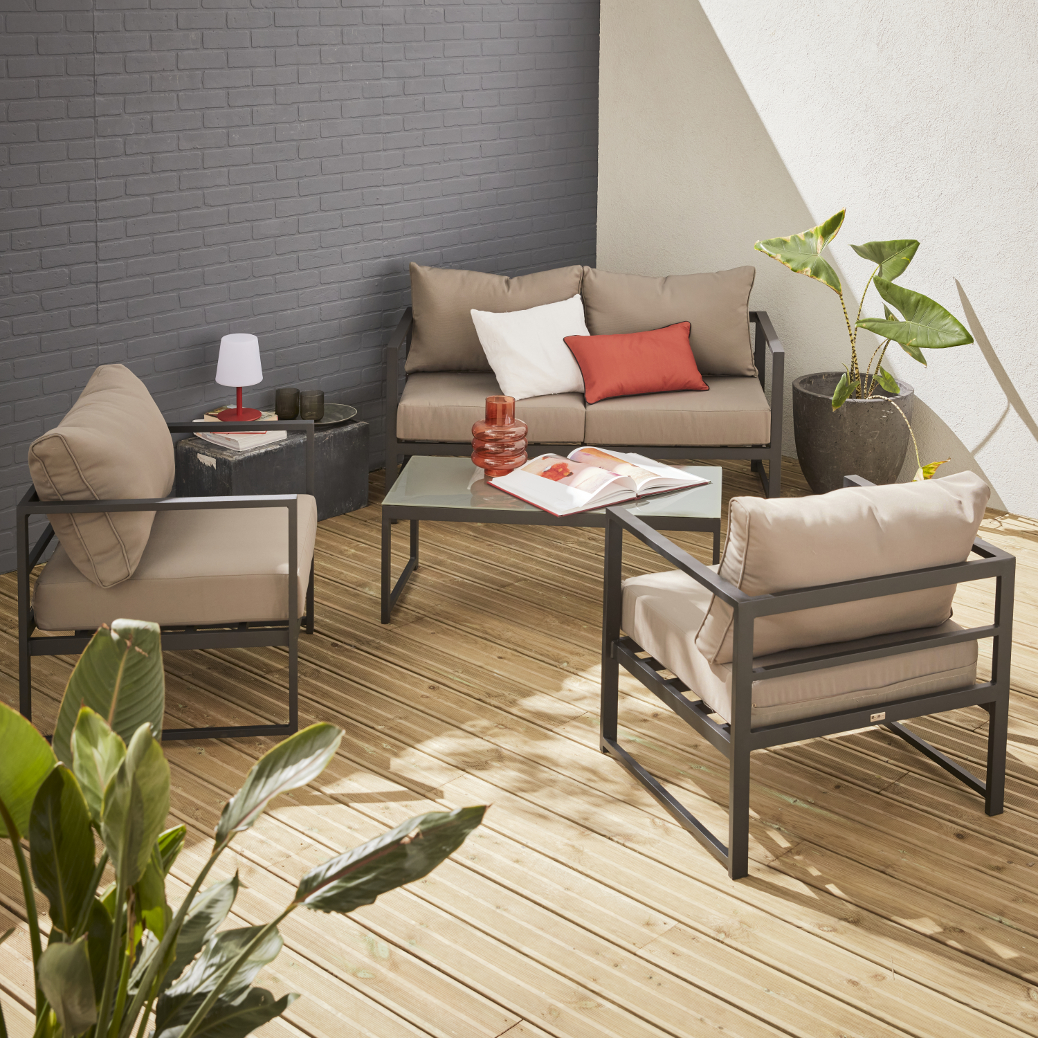 salon de jardin 4 places balea anthracite et taupe 4 elements en aluminium coussins epais design