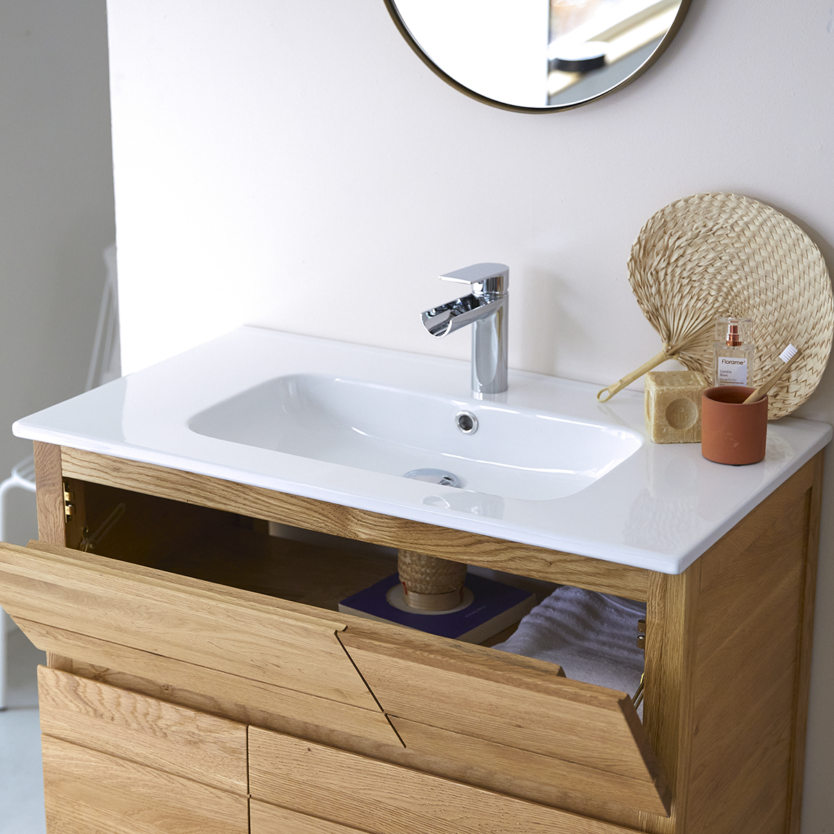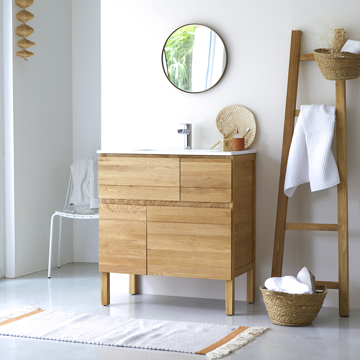 meuble en chene avec vasque 80 cm mobilier salle de bain tikamoon