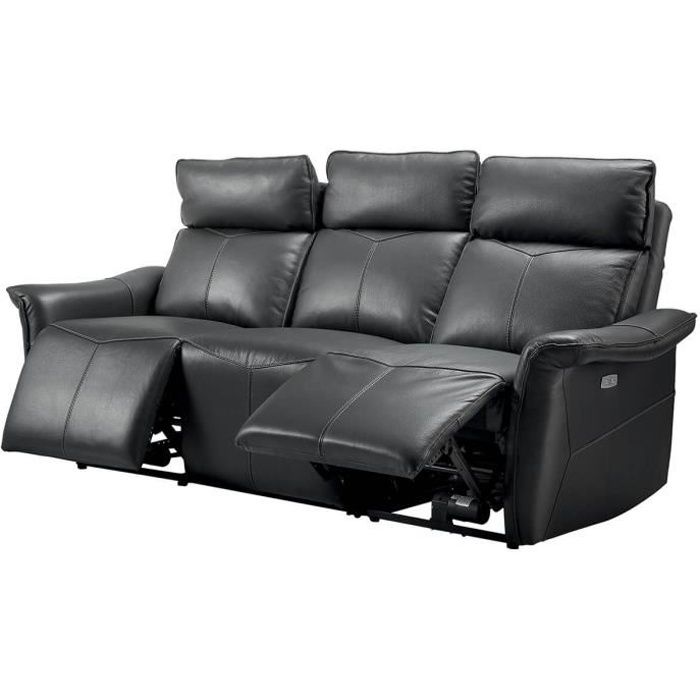 kenita canape relax electrique 3 places cuir noir cdiscount maison