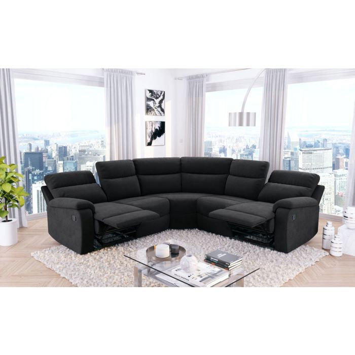 canape d angle de relaxation 5 places detente en simili tissu noir gris cdiscount maison