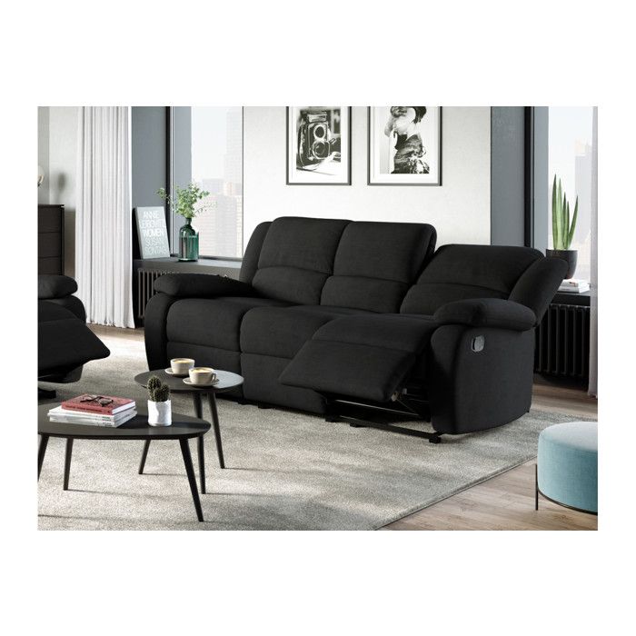 relax canape de relaxation droit 3 places tissu noir contemporain l 190 x p 93 cm cdiscount maison