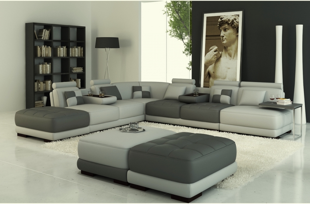canape d angle scandinavie en cuir haut de gamme italien idem a la photo couleur principale gris pastel et couleur secondaire gris fonce avec 3 poufs table offerte casanoti mobilier prive