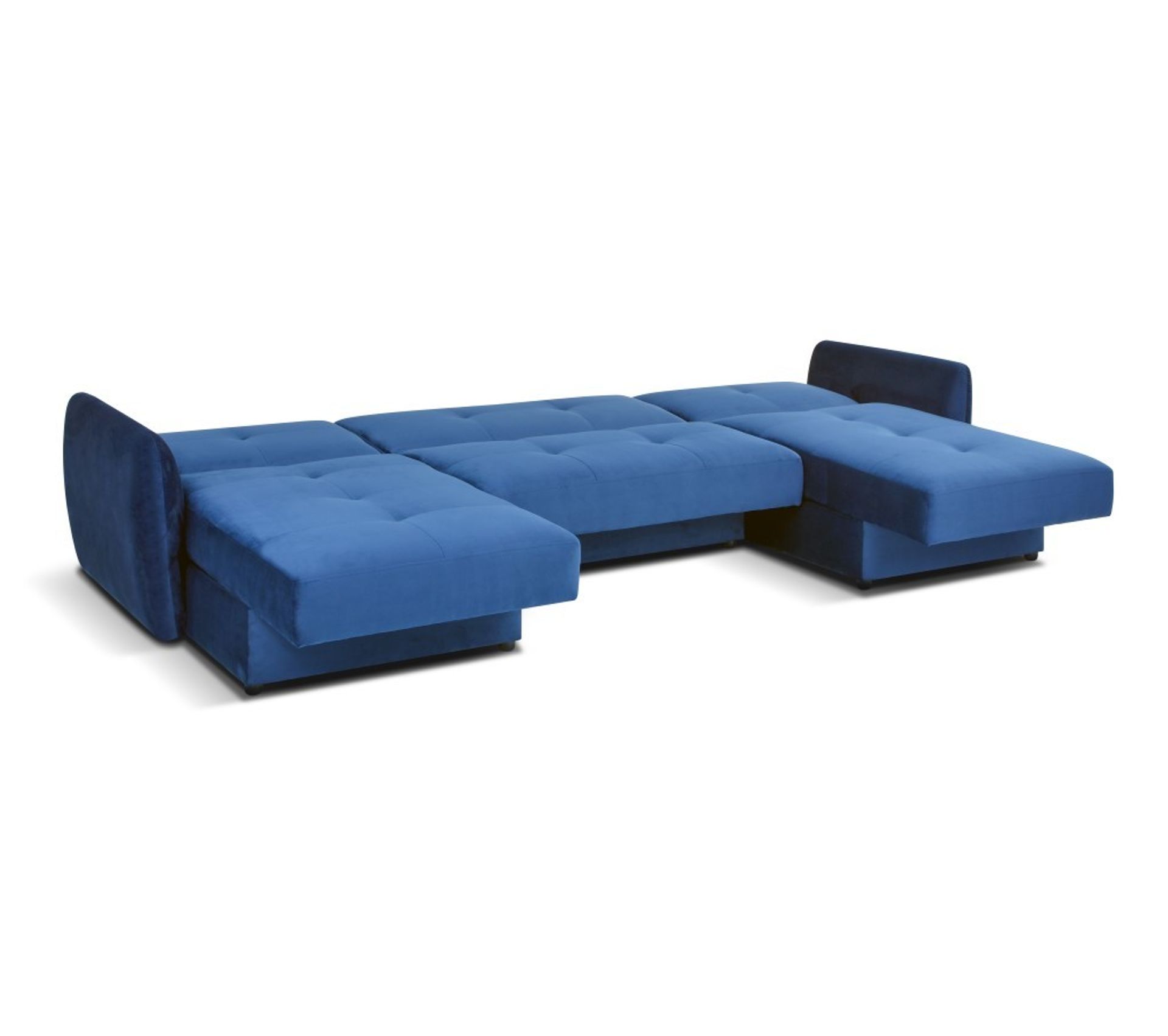 canape panoramique convertible kain bleu avec coffre de rangement canape but