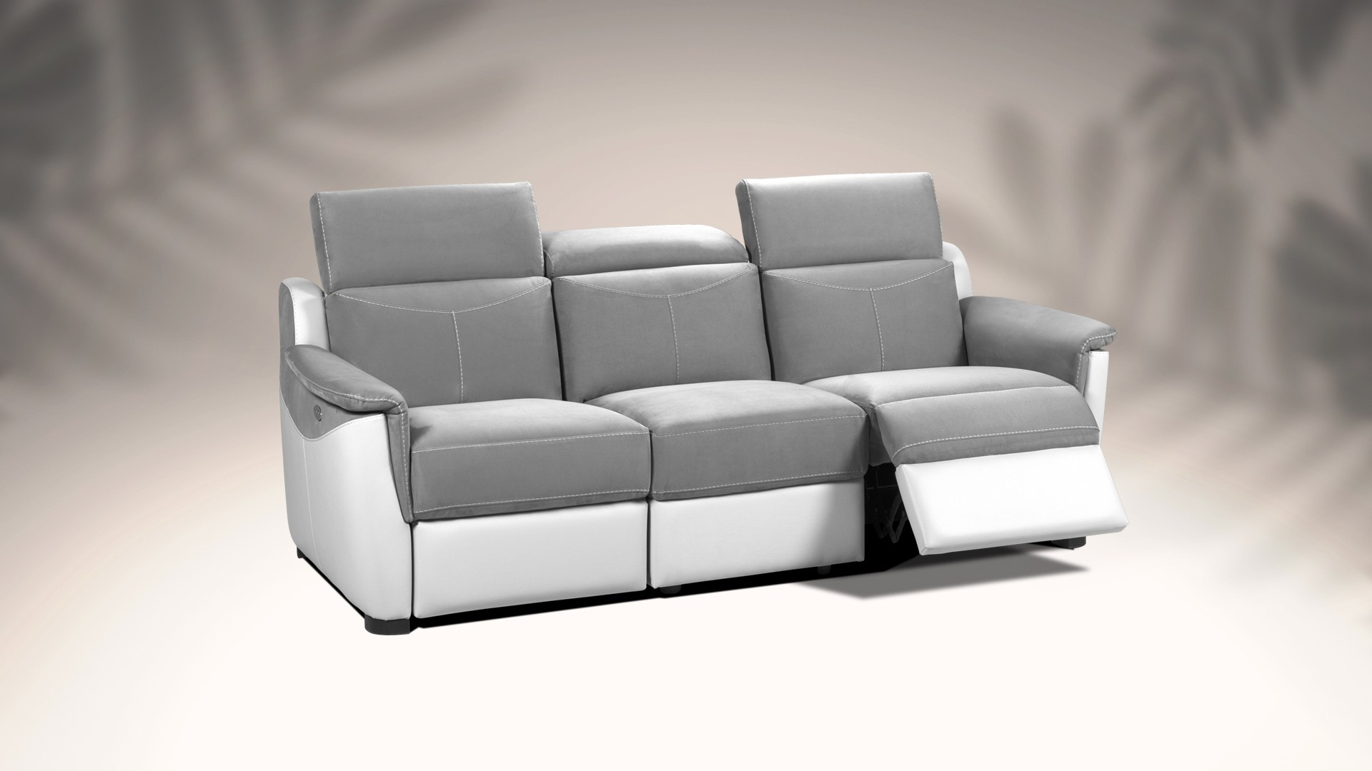 natal canape 3 places avec 2 assises electriques et tetiere manuelle tissu gris et blanc l 207 x p 106 x h 86 cm cdiscount maison
