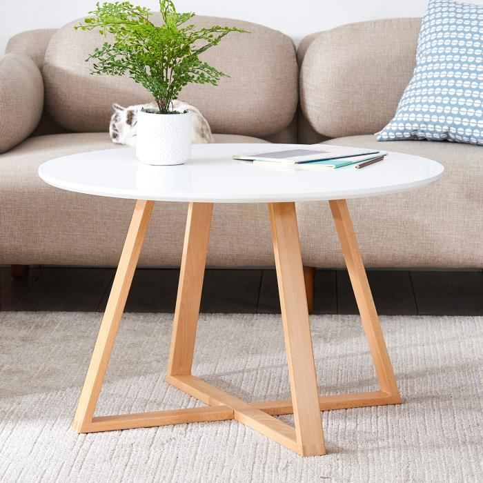 ibuyke table basse rond pied en bois massif de l hetre table de salon rangment bout de canape 80 x51cm table a manger rf 990 cdiscount maison