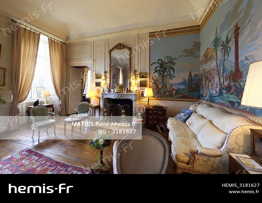france ille et vilaine 35 alentours de saint malo saint coulomb malouiniere de la ville bague demeure d armateurs de saint malo le grand salon papier peint panoramique de la manufacture dufour et leroy exemplaire exceptionnel dans sa version