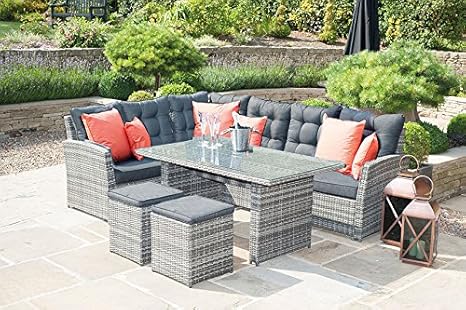 cayman set de salle a manger d exterieur en rotin canape d angle avec poufs assise mobilier de jardin amazon fr jardin