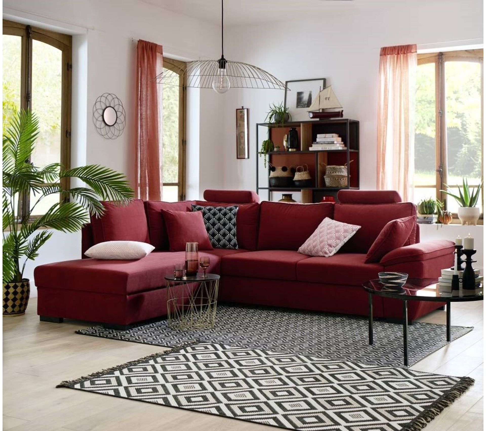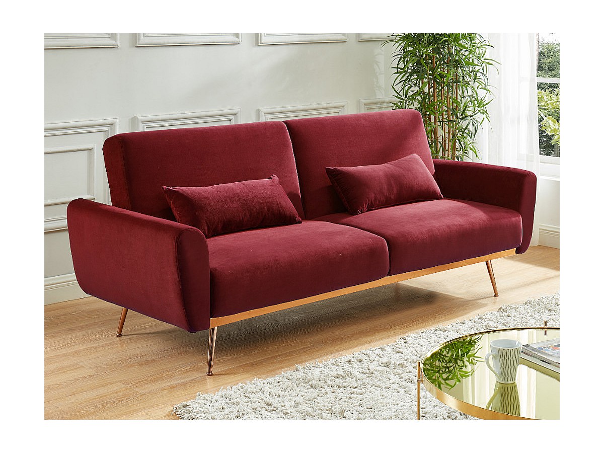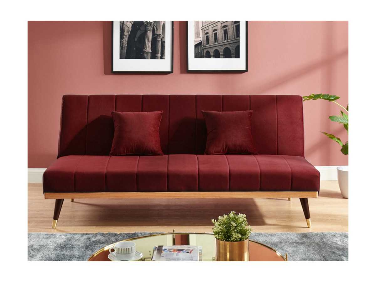 canape 3 places clic clac en velours bordeaux kerbi