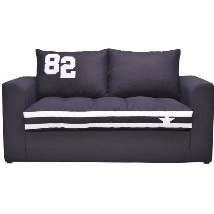 hexagone canape droit convertible deplimousse 2 places jeff tissu bleu et blanc contemporain l 153 x p 78 cm cdiscount maison