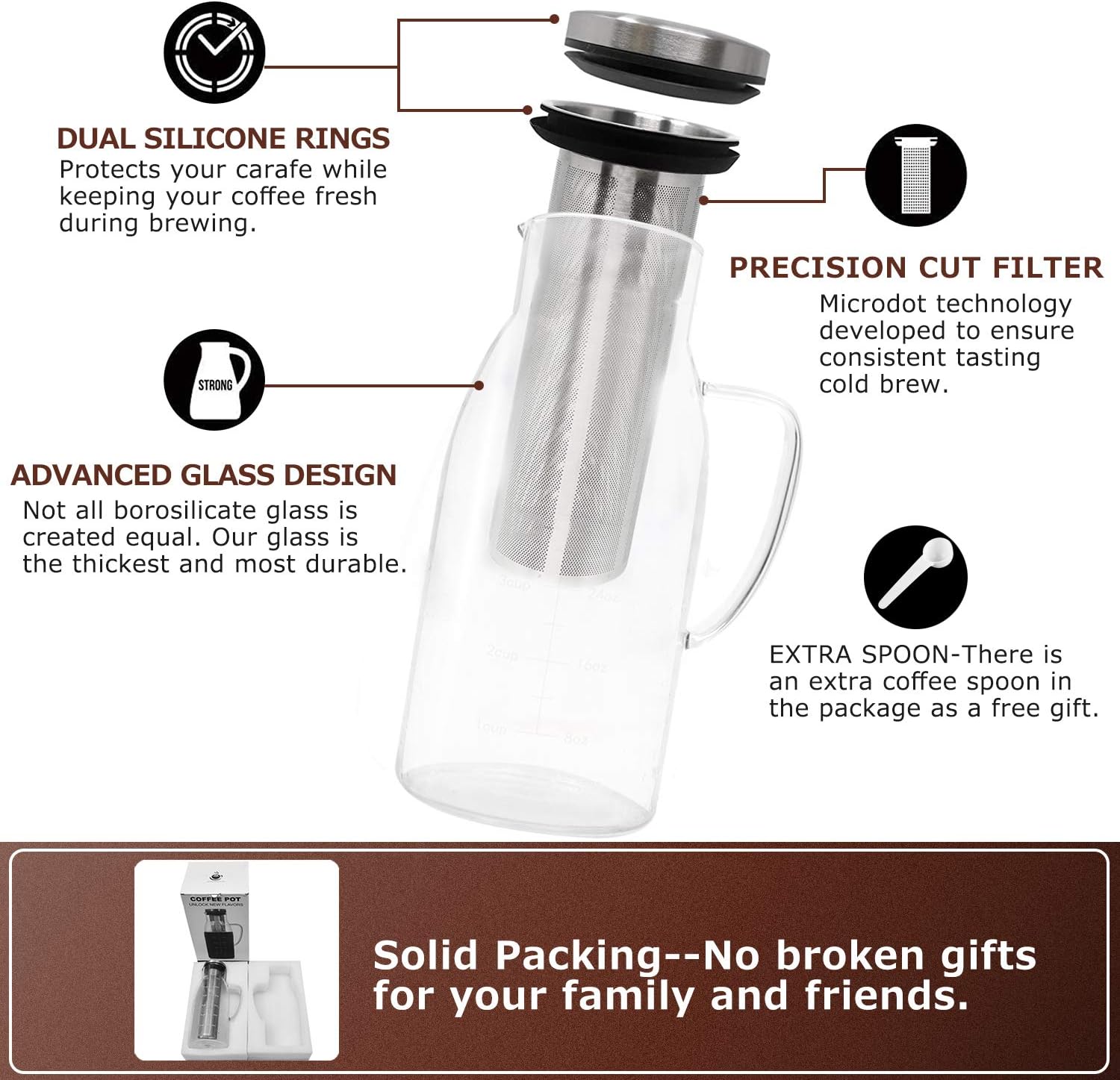 airtight cold brew coffee maker 1 5l 51oz thick high borosilicate glass carafe iced coffee and tea pitcher with removable stainless steel mesh filter tea maker with infuser kitchen dining home kitchen