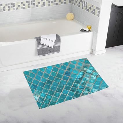 zhanghome carrelage de mosaique en ceramique turquoise brillant exotique antiderapant tapis de bain tapis tapis tapis de bain tapis de sol pour salle de bains 20 x 32 pouces amazon fr cuisine