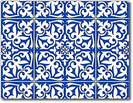 oliyneco tapis imitation carrelage marocain en caoutchouc antiderapant pour exterieur interieur cobalt bleu et blanc 60 cm x 40 cm amazon fr cuisine maison