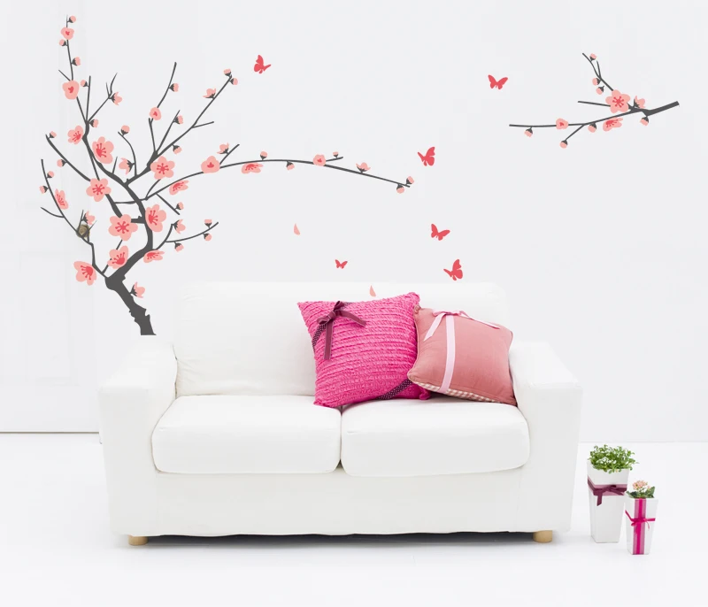 peach blossom papillons stickers muraux 130 200 cm fleurs et arbre stickers muraux mobilier salon decoration aliexpress