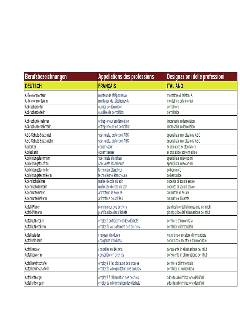 berufsbezeichnungen appellations des professioni pdf dechets nature