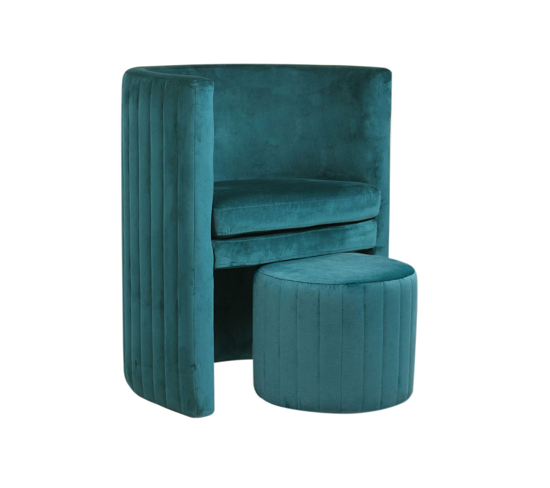 fauteuil avec pouf en velours vintage cabriolet bleu fauteuil but