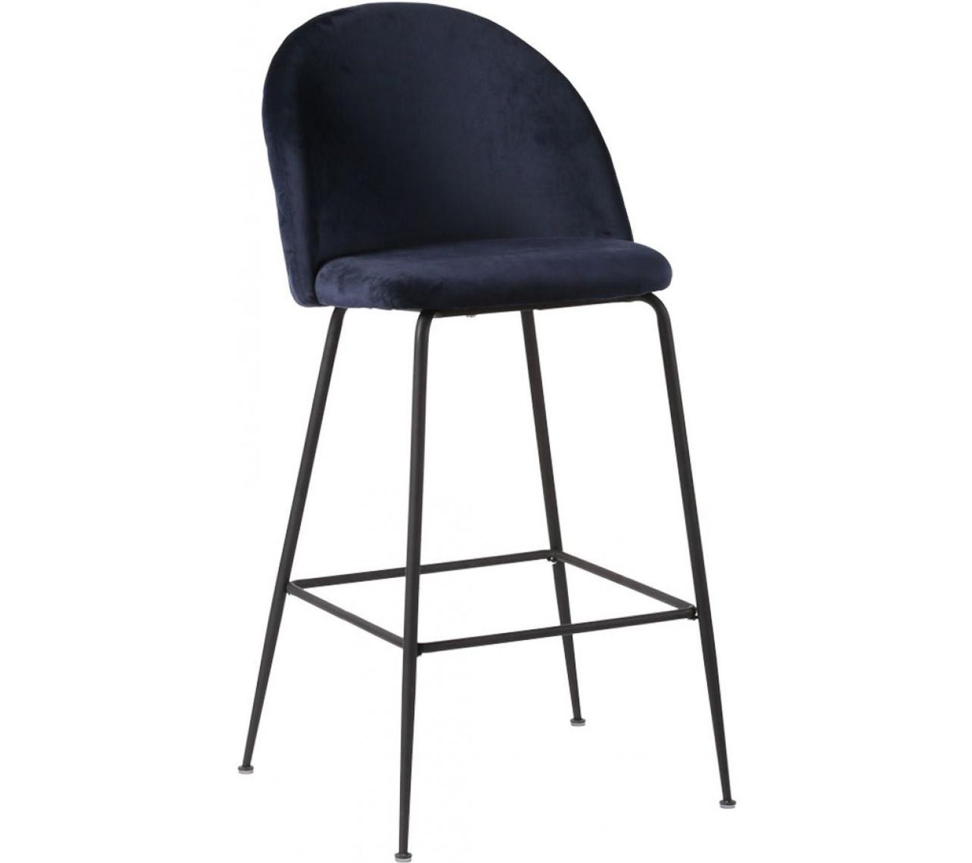 tabouret de bar au dos matelasse en velours bleu avec pietement en acier noir lausanne tabouret but