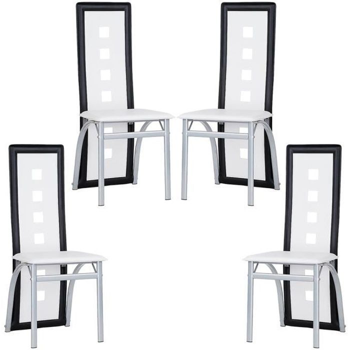 jeobest lot de 4 chaises de salle a manger simili blanc noir six trous cdiscount maison