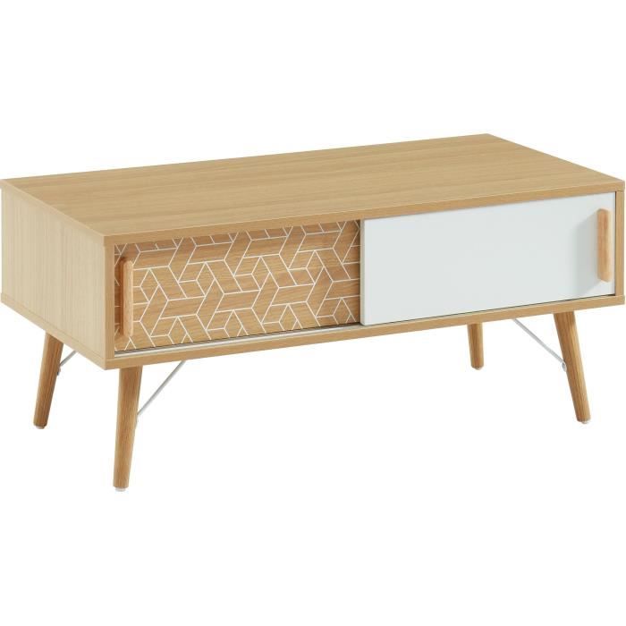 table basse 2 portes decor chene et blanc l 90 x p 45 x h 40 cm louisa cdiscount maison