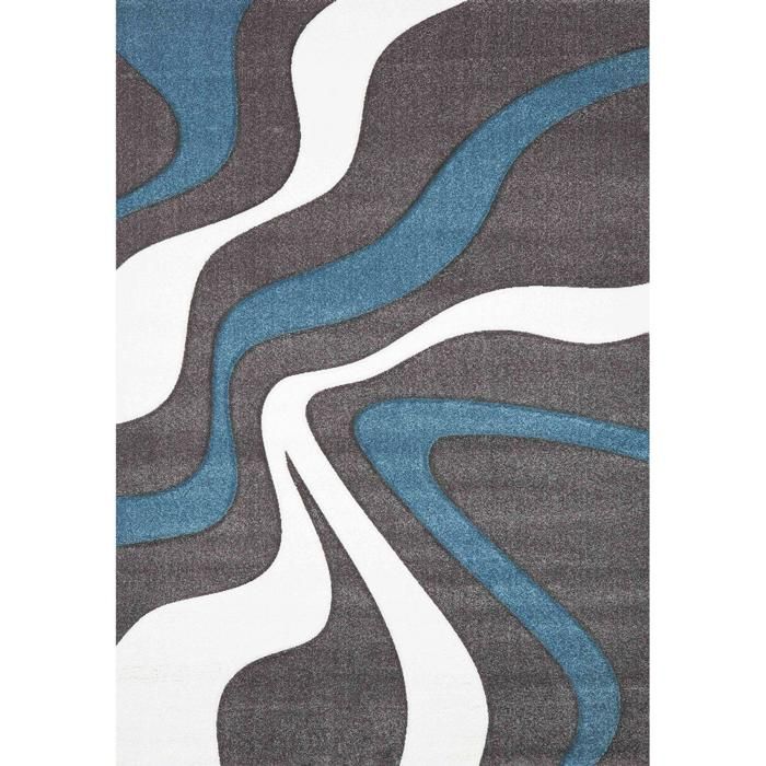 tapis de salon poils ras moderne ondule avec motif 3d abstrait 160x230 cm gris bleu cdiscount maison