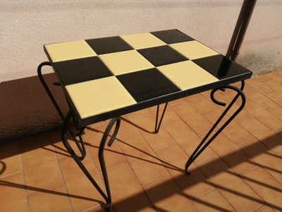 table basse porte plante carrelage damier jaune noir fer forge vintage 60 s 70 s ebay
